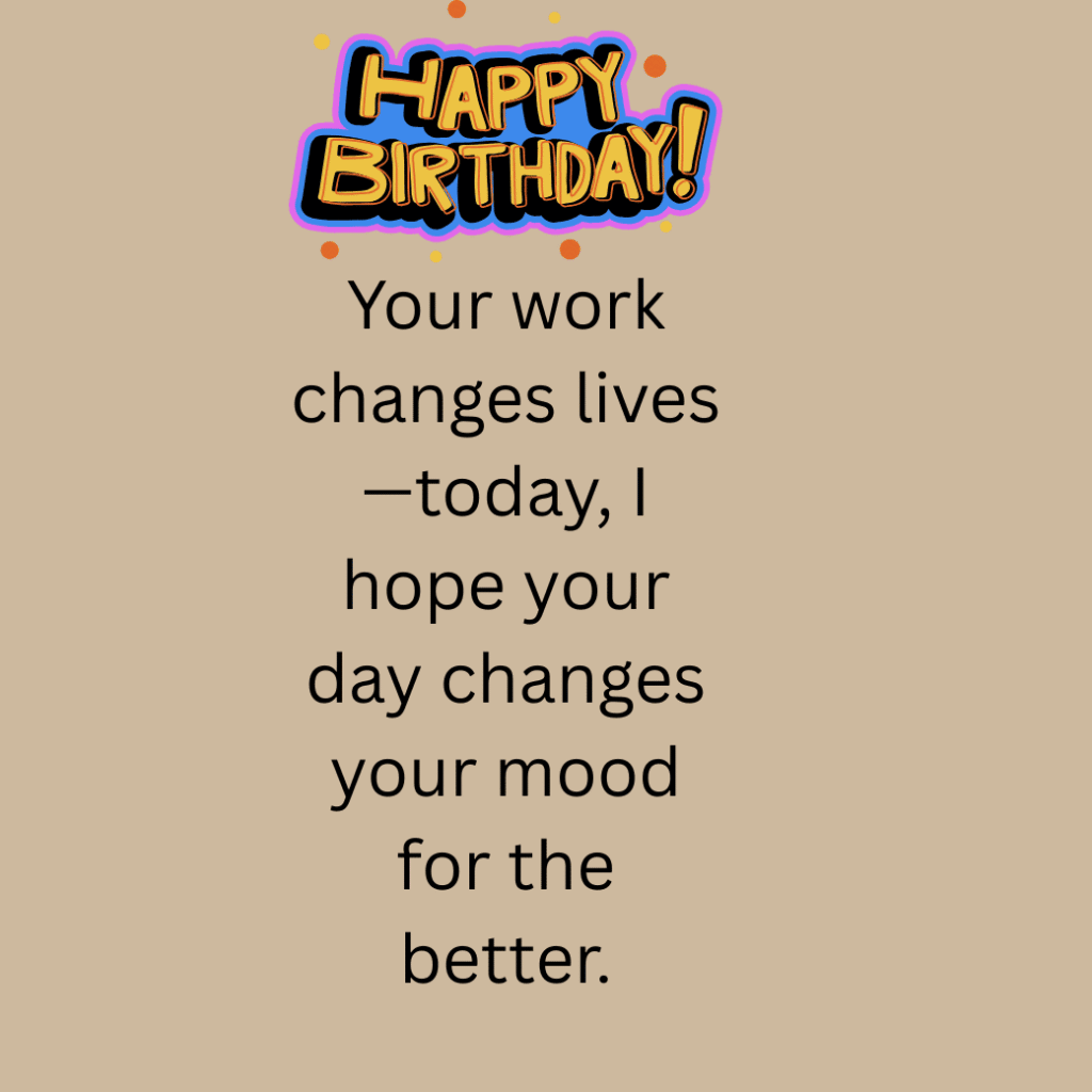 Your work changes lives—today, I hope your day changes your mood for the better.