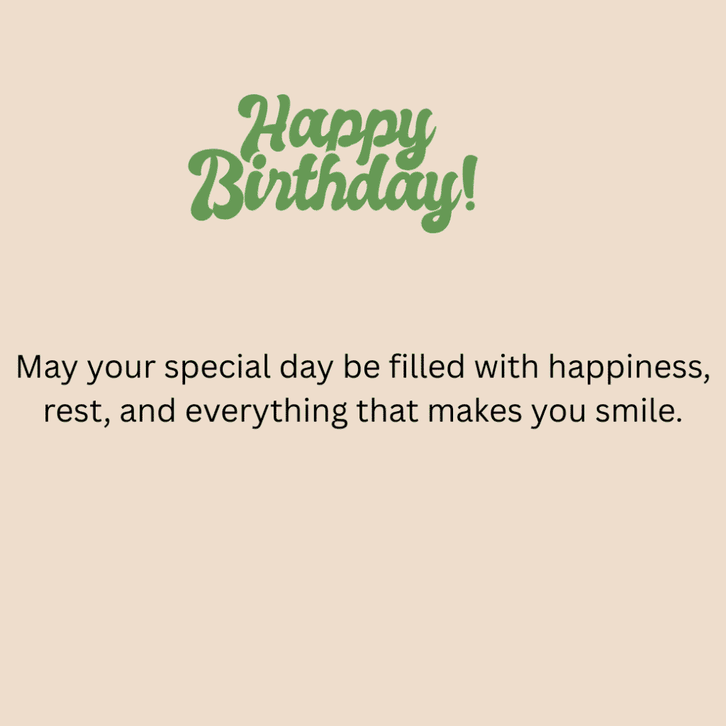 May your special day be filled with happiness, rest, and everything that makes you smile.