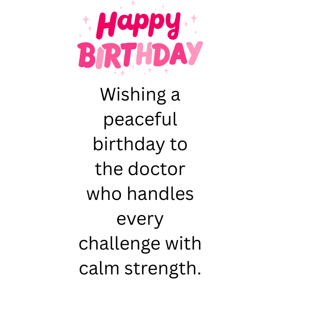 Wishing a peaceful birthday to the doctor who handles every challenge with calm strength.