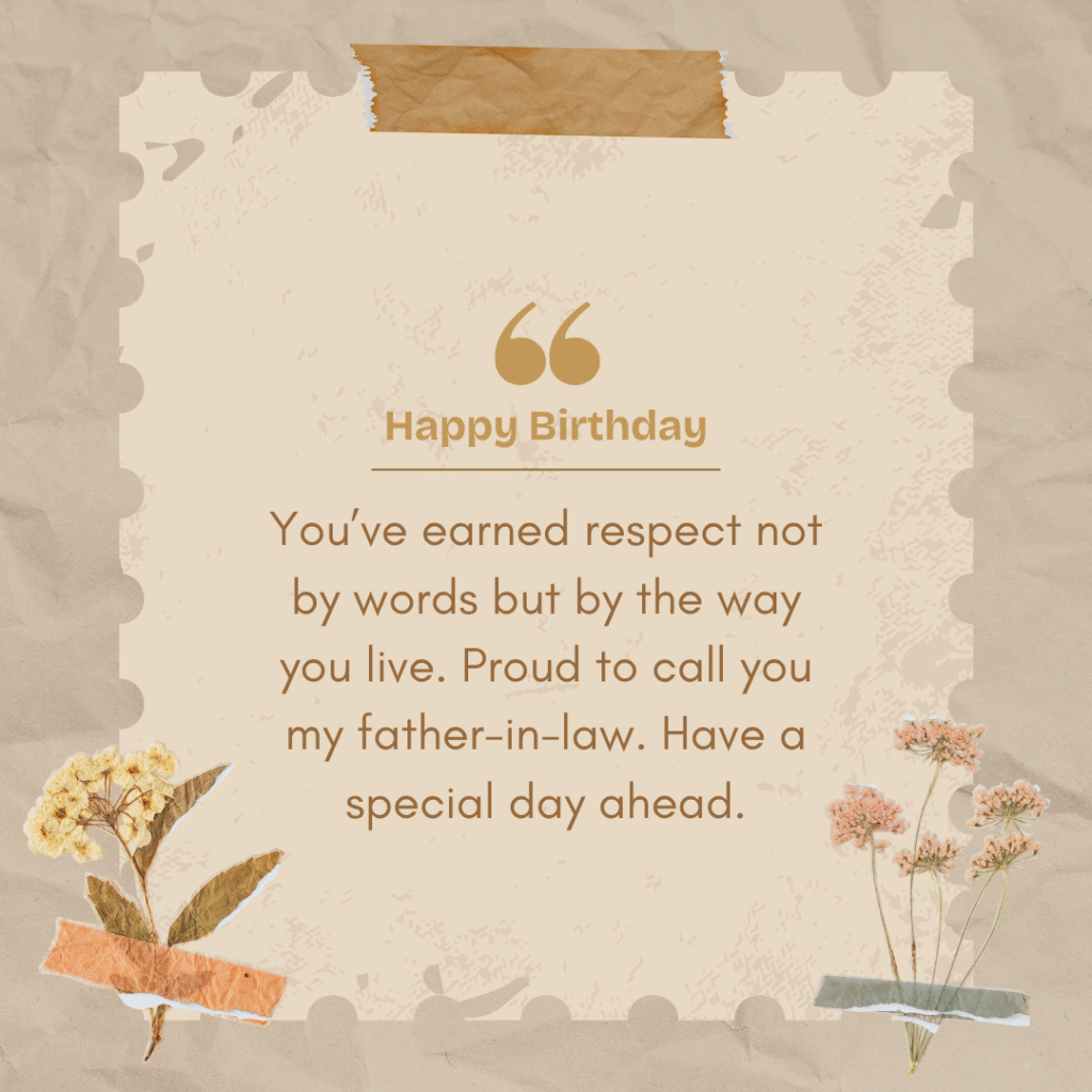 Happy Birthday. You’ve earned respect not by words but by the way you live. Proud to call you my father-in-law. Have a special day ahead.