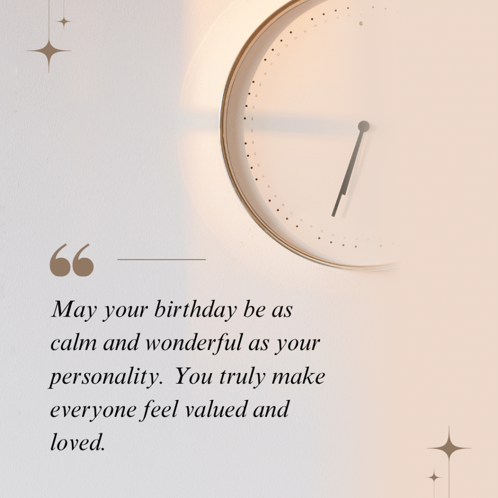 May your birthday be as calm and wonderful as your personality. You truly make everyone feel valued and loved.