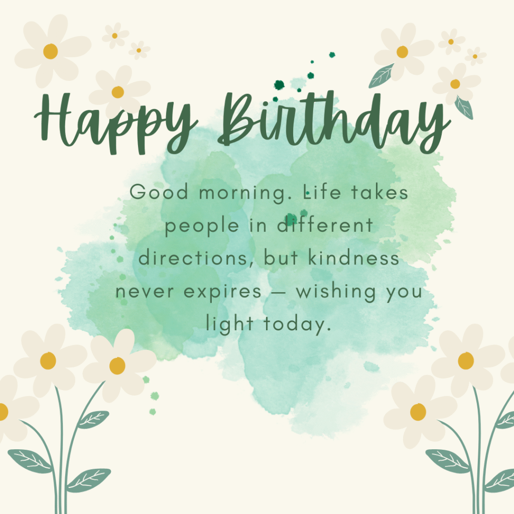 Happy Birthday. Good morning. Life takes people in different directions, but kindness never expires — wishing you light today.
