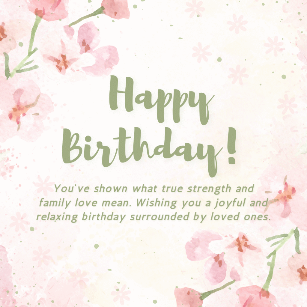 Happy Birthday! You’ve shown what true strength and family love mean. Wishing you a joyful and relaxing birthday surrounded by loved ones.