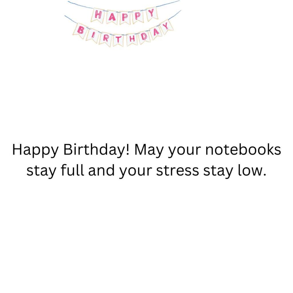 Happy Birthday! May your notebooks stay full and your stress stay low.