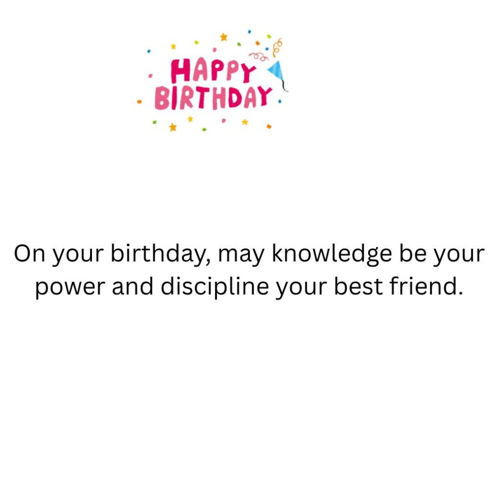 On your birthday, may knowledge be your power and discipline your best friend.