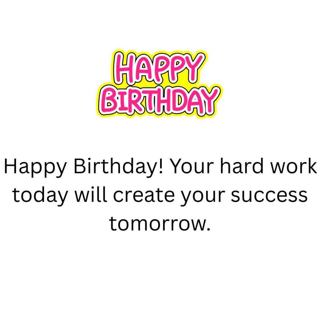 Happy Birthday! Your hard work today will create your success tomorrow.